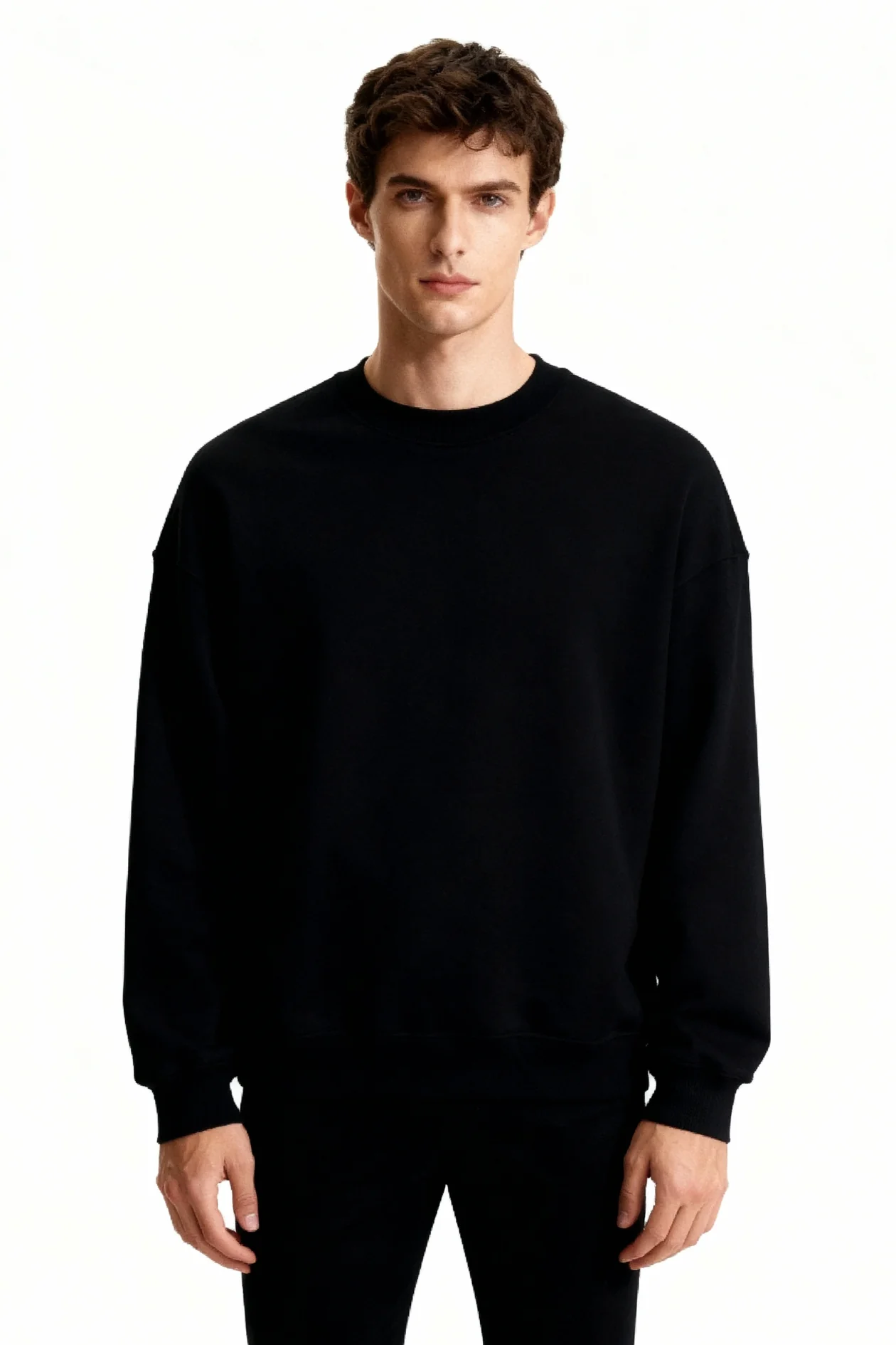 Dieser Baumwollpullover ist ein Kleidungsstück für den täglichen Gebrauch bei kühleren Temperaturen. Er verfügt über einen klassischen Rundhalsausschnitt und eine strukturierte Passform für ein klares, schlichtes Erscheinungsbild. Das Material besteht aus schwerer Baumwolle, die dicht verarbeitet ist und eine gleichmäßige Oberfläche bietet.