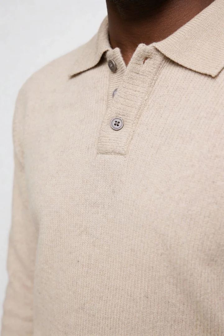 Dieses langärmelige Strick-Polohemd ist ein Kleidungsstück für den täglichen Gebrauch in Übergangszeiten. Es verfügt über einen klassischen Polokragen mit Knopfleiste sowie eine strukturierte Strickoberfläche mit gleichmäßiger Textur. Die Passform ist schlank geschnitten und unterstützt eine klare Silhouette.
